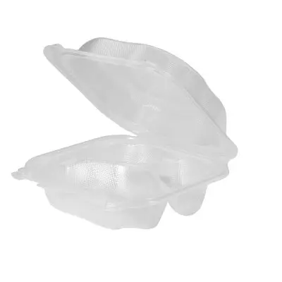 Versatile and innovative, Clover™ enhances food visualization and helps increase order accuracy. You can elevate your takeout and delivery operations while providing positive customer experiences with these hinged containers. Here we have the 7.5" x 7.5" 3-compartment square container. We also have larger versions of the 3-compartment container: an 8" x 8" and a 9" x 9" clear hinged square container.