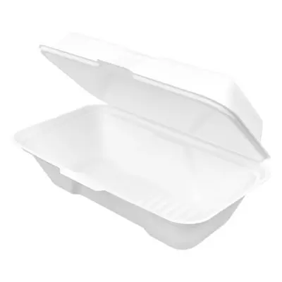 If you're looking for a food container with a hinged lid, the Harvest® Fiber line is it. Here we have the 9" x 5" rectangular container, which has a 3" depth. Perfect for hot and cold food applications, this container, along with all products in the Harvest® Fiber line, is free of added PFAs, microwave-safe and commercially compostable.