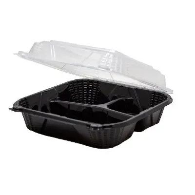 Versatile and recyclable, ProView™ containers can be stored in the refrigerator, reheated in the microwave, and placed in the dishwasher. With compartmentalized bases and clear lids, the containers enhance off-premises operations by keeping food contents in each compartment intact, protecting meal presentation, and helping replicate in-house dining.