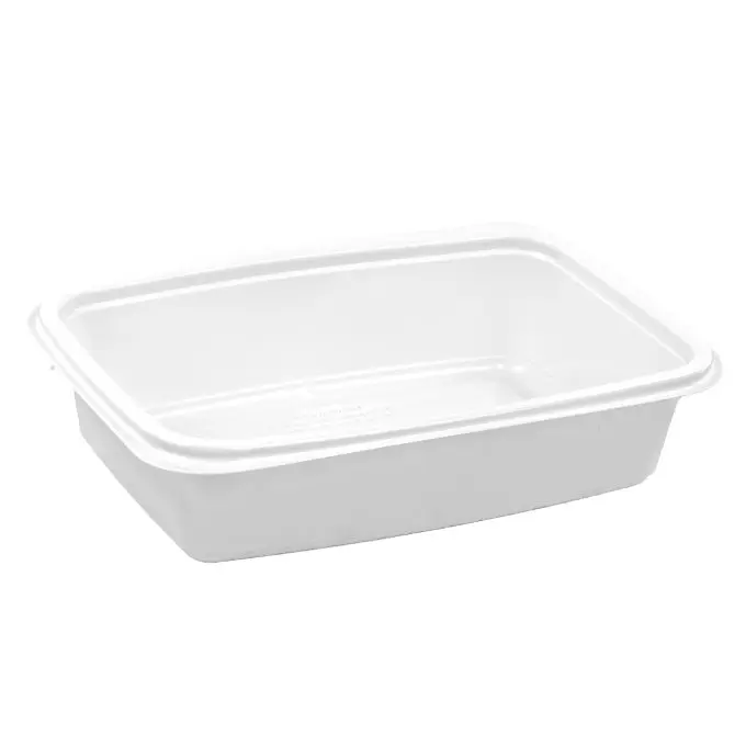 Stone white polypropylene container that is perfect for a variety of food applications, hot or cold. This version is the large 32-ounce rectangle container, and we have the matching lid for it. Need different sizes? We also offer 12 oz., 16 oz., and 24 oz. options. This container is also available in black.